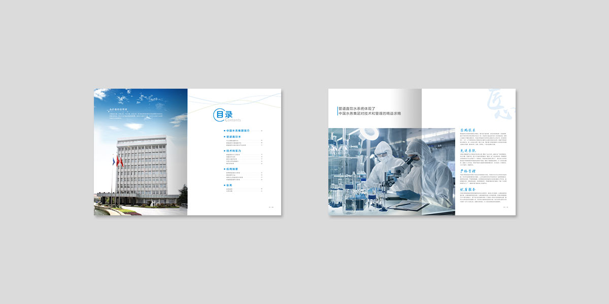 啟止視覺(jué)為中國(guó)水務(wù)集團(tuán)有限公司設(shè)計(jì)并制作了直飲水產(chǎn)品宣傳冊(cè),并得到了客戶的認(rèn)可。